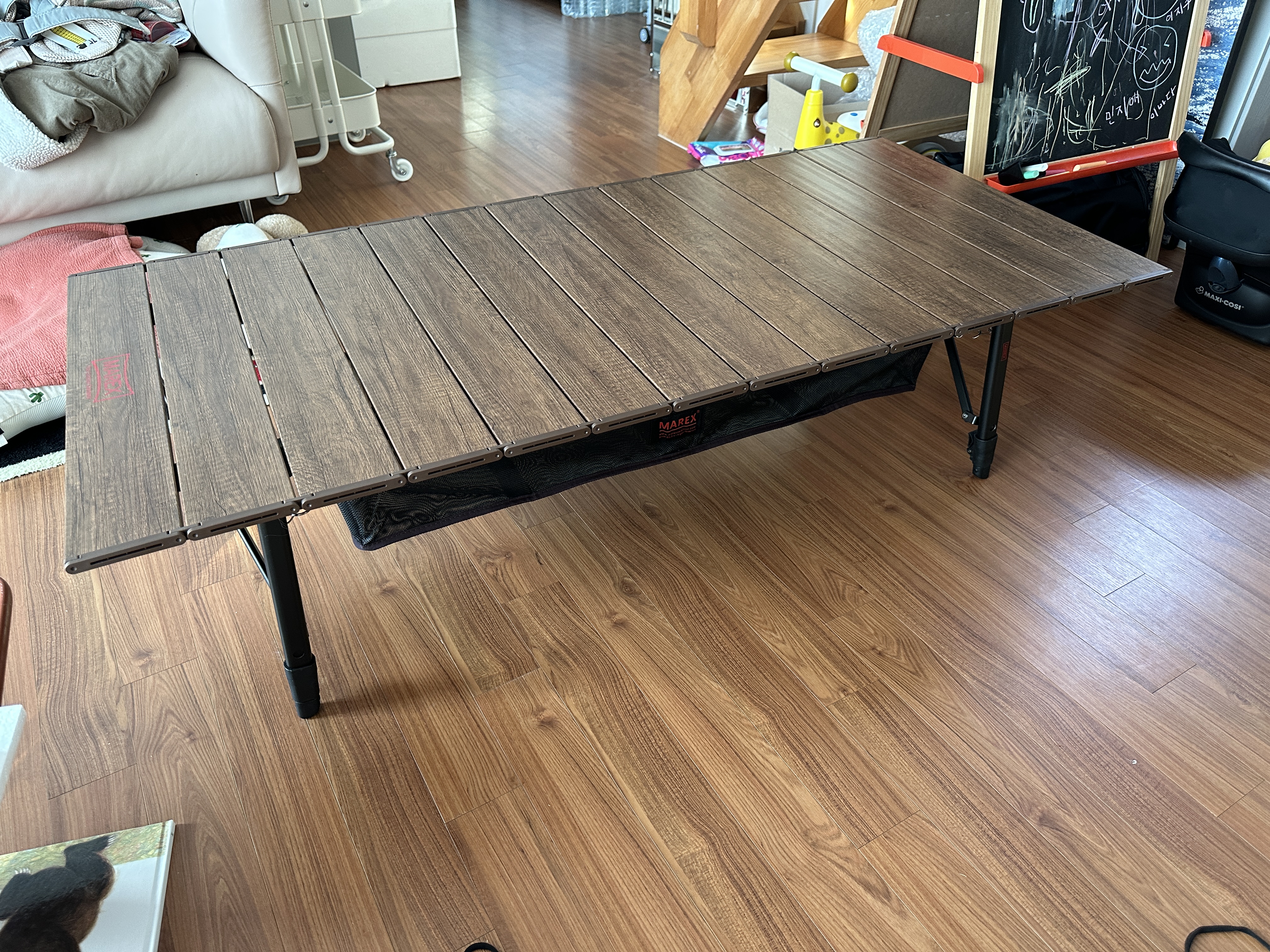 테이블 상판 나무인데요. 들어보고 약간 실망했던건 저렴한 플라스틱 느낌이 나서였습니다. 근데 생각해보니 철제느낌의 무거운 상판이었다면 무거워서 이동성도 떨어지고 잘 안쓰게 됐을것 같기도 하네요. 그렇다고 저렴한 느낌은 아닙니다.