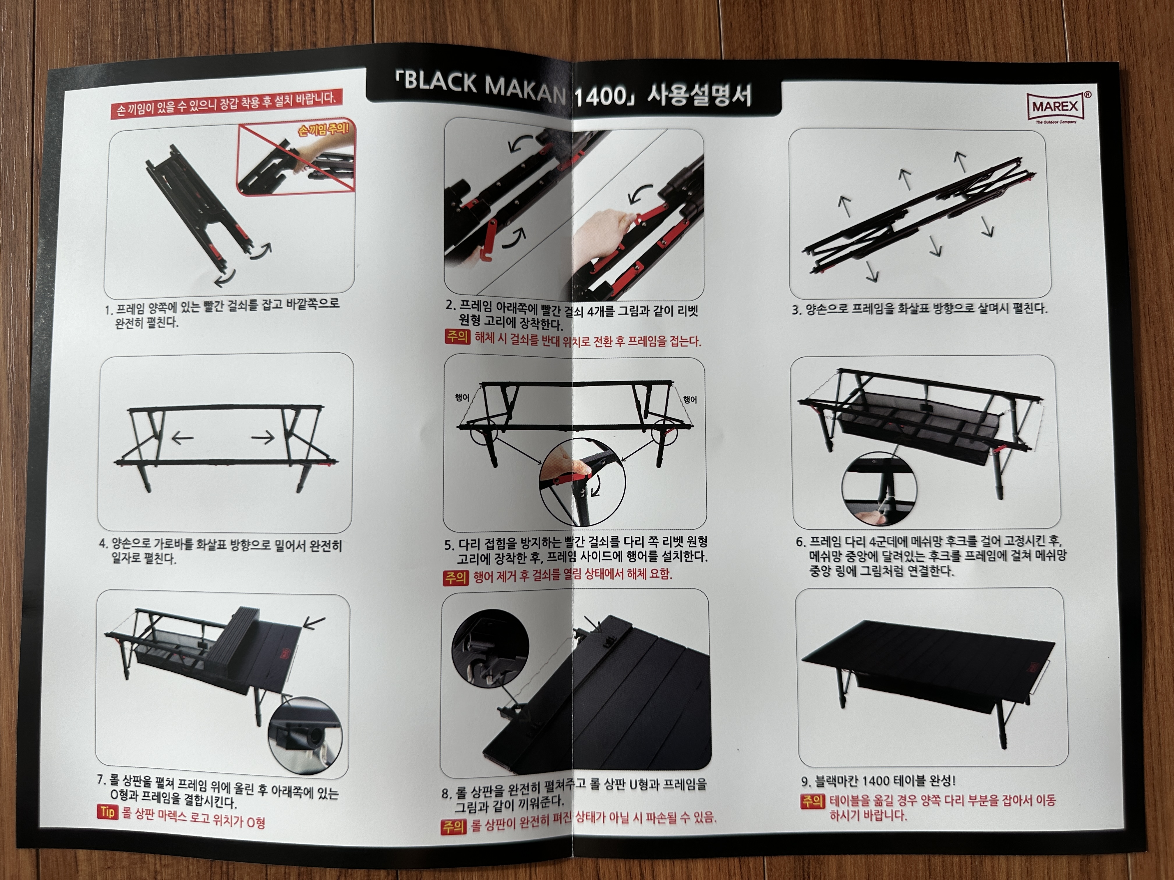 가방을 열면 이렇게 테이블 구성품이 가지런히 위치해있습니다.